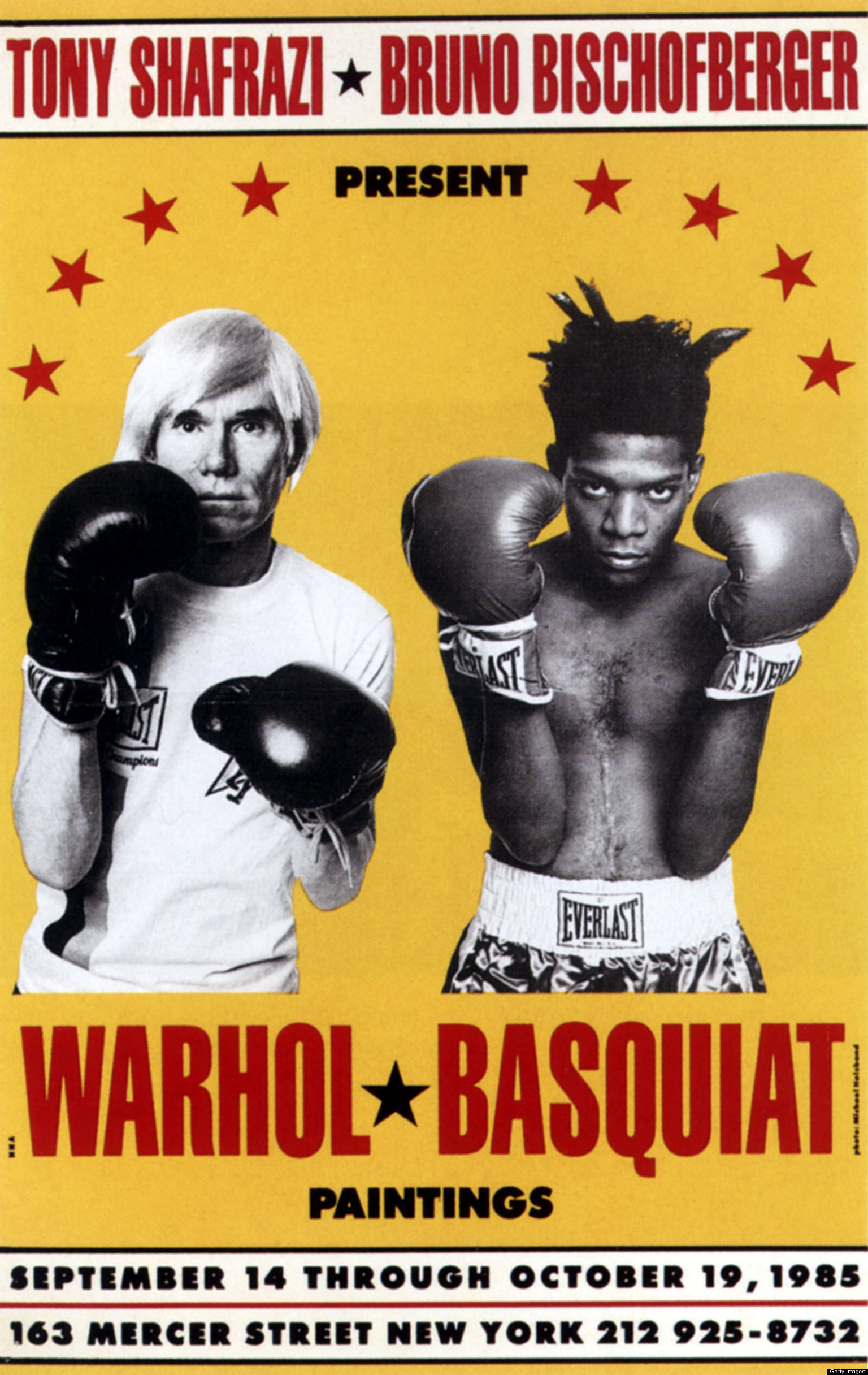 UNSPECIFIED – SEPTEMBER 22: Exhibition Andy Warhol and Jean Michel Basquiat in New York poster 19octobre 1985 boxing gloves pop art graphics (Photo by Apic/Getty Images)